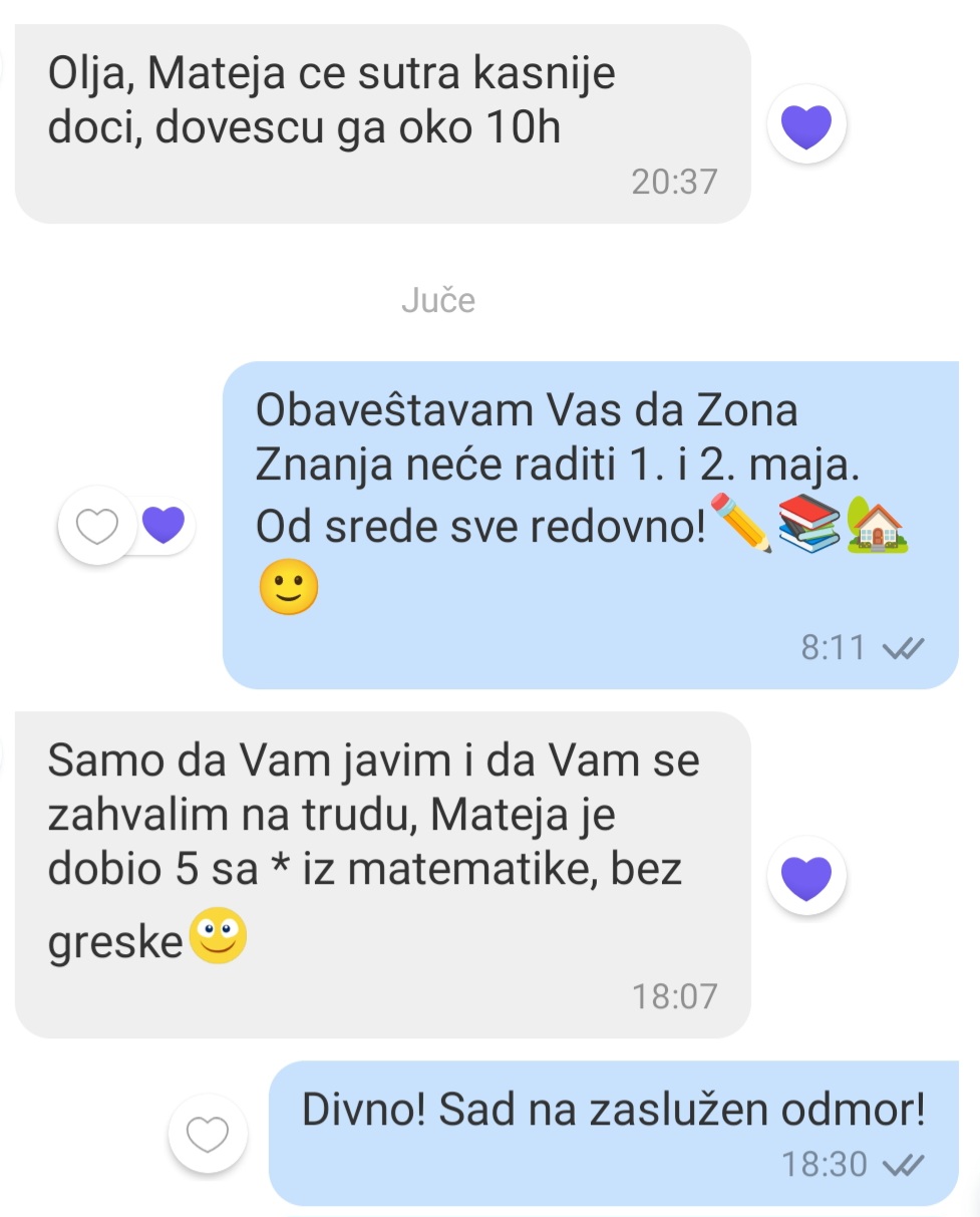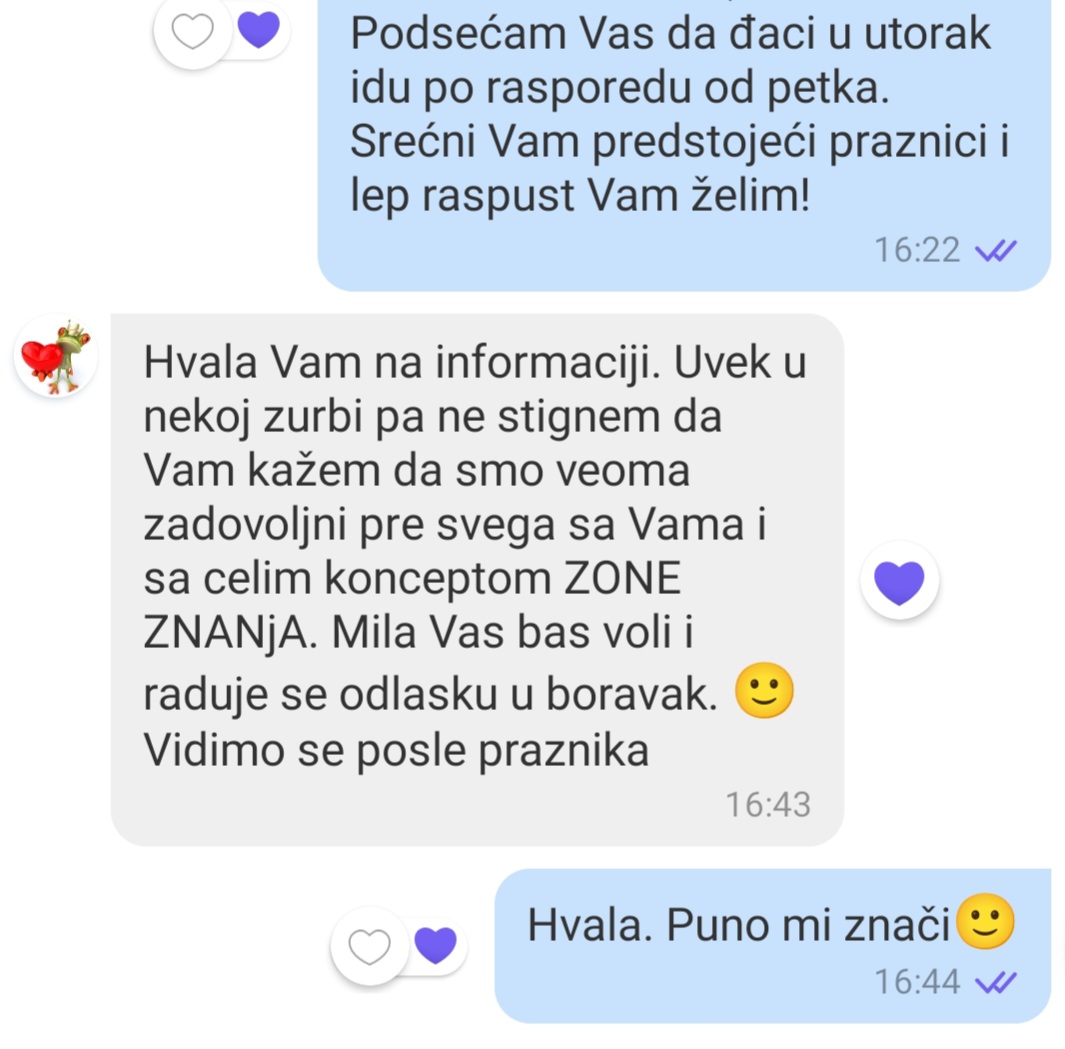 Potvrda dobrog rada jeste u zadovoljstvu učenika i roditelja.